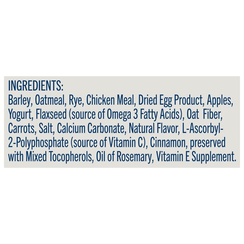 - MADE WITH APPLES: BLUE Health Bars dog treats prove that a healthy treat can be tasty, too; With ingredients like oatmeal, apples and yogurt, they feature the ingredients you’ll be proud to feed your furry family members