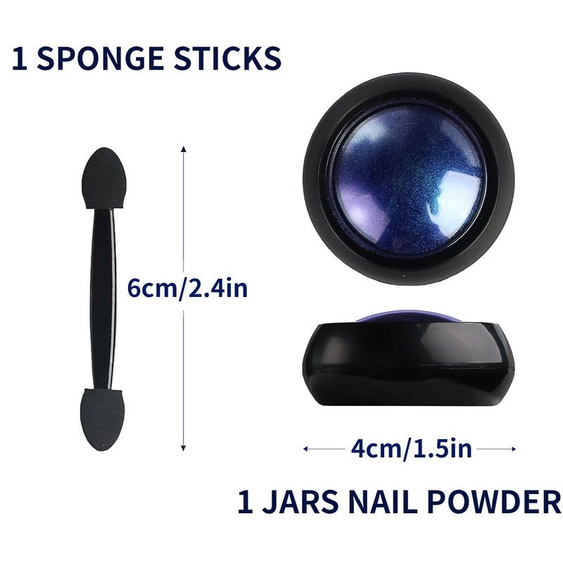 - What You Will Receive: 1 jar of premium chrome powder for nails and a sponge stick (used to apply chrome powder) for each package. Each jar contains 0.3-0.4 grams of nail pigment powder for long-term use. And jar was well-sealed to prevent the chrome pigment powder from coming out.
