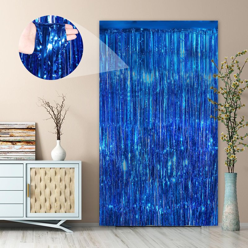 Blue Fringe Curtain Party Streamers 2Pack 3.3x8.3 Ft Foil Fringe Backdrop Curtains for Birthday Wedding Bridal Baby Shower Holiday Tinsel Streamers Blue Christmas Party Decorations Door Streamer