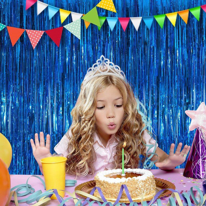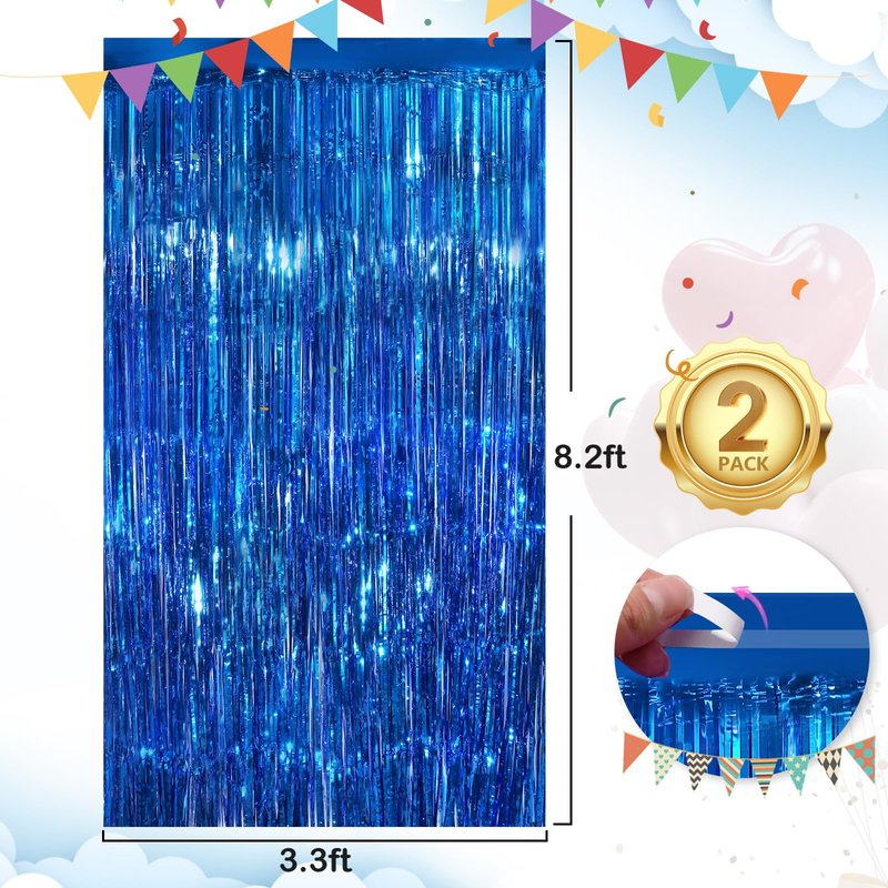 - Materials: The package contains 2 packs of aluminum foil tassel curtains with a size of 3.3 x 8.3ft. It is long enough for any occasion. Please do not stick aluminum foil Streamers curtains to uneven or stained walls to prevent them from falling off