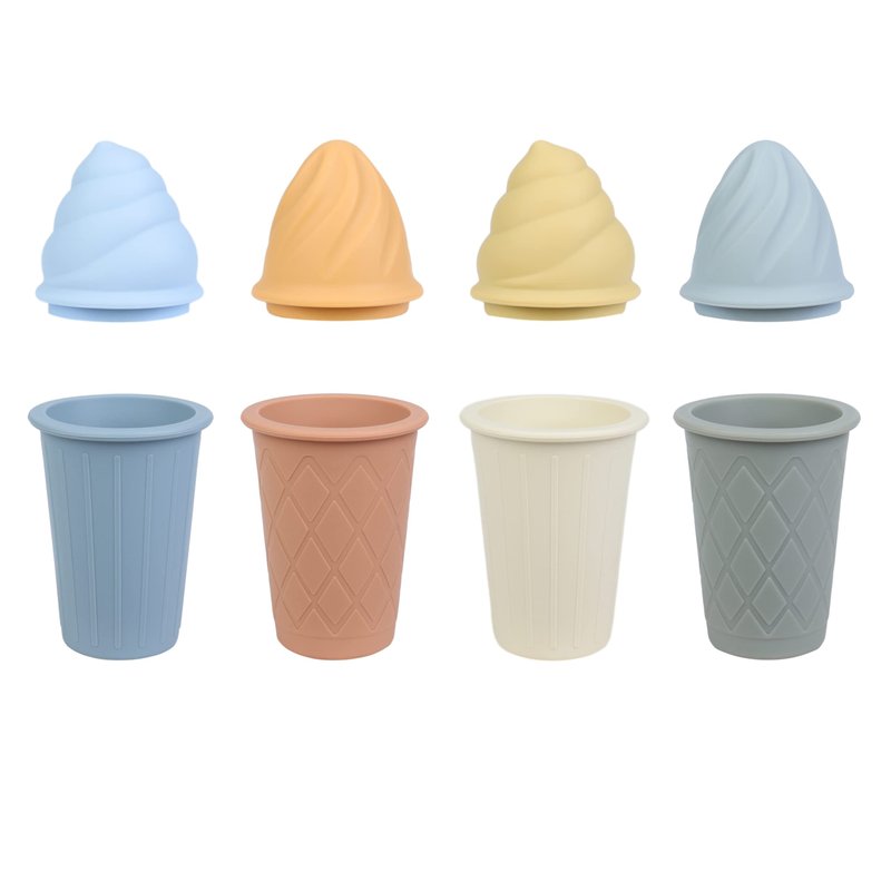 - Silicone Ice Cream Sand Toys - Our ice cream toy molds are perfect for a fun day at the beach. Made from silicone, they are made to last and are travel-friendly. Each set has four ice cream cones and tops that can be mixed and matched, encouraging creative, open-ended play.