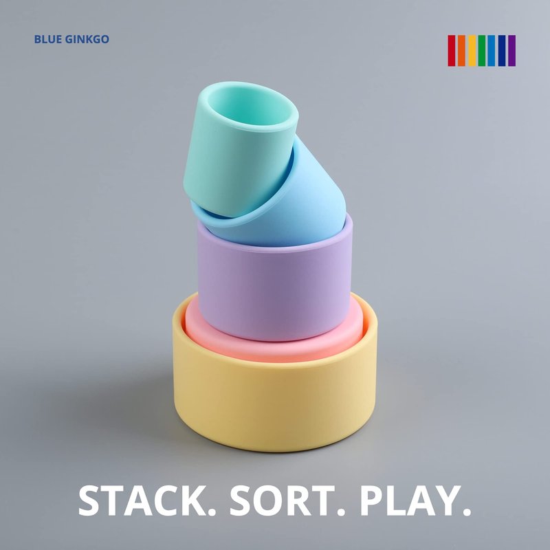 - Silicone Stacking Cups: All of the Fun, None of the Plastic - Made from durable and soft silicone, this set of childrens stacking cups is a modern plastic-free alternative to the classic toy stacking cups that have become an essential toy for every family with young kids.