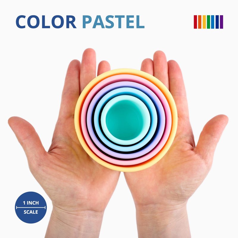 BLUE GINKGO Silicone Stacking Cups - Nesting Cups and Silicone Stacking Toy - Open Ended Montessori Toddler and Baby Stacking Cups - Neutral Baby Toys (5 Cups - Pastel)