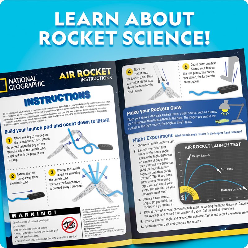 Blue Marble National Geographic Air Rocket Launcher Toy - Launch Glow in The Dark Rockets up to 100 Feet, Kids Outdoor Toys, Toys for Kids 8-12, Glow in The Dark Toys, Rocket Kit, Fun Outdoor Toys