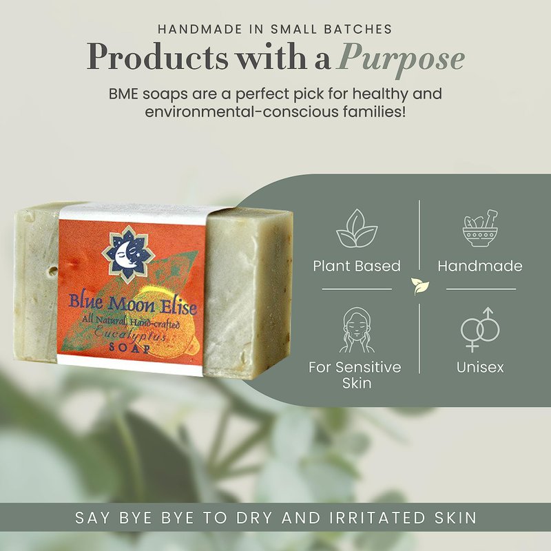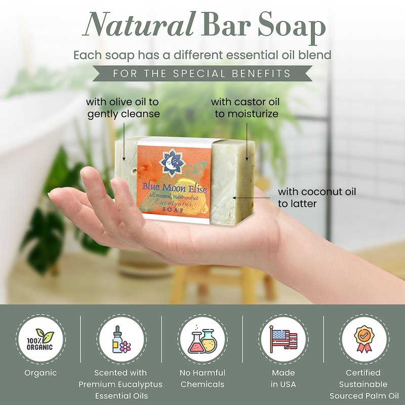 Blue Moon Elise Eucalyptus Bar Soap for Men and Women, Made with Organic Ingredients, Handmade in the USA, Moisturizing and Therapeutic for Face/Body, Soap Bar for Sensitive Skin