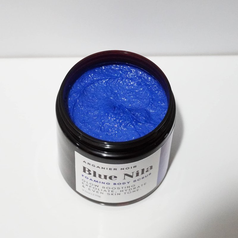 Looking for a scrub that has many benefits, the blue Nila scrub will give you a beautiful gentle exfoliation, deep clean your skin, the Nila powder even your skin tone. Luxurious experience that leaves your skin nourished and silky soft. Massage the scrub into your skin using gentle circular motions, For extra Smooth skin let the scrub sit on your skin for a couple of minutes. Then, Rinse. . . . Ingredients:100% Pure Moroccan Nila Powder (True Indigo), Aqua, Sorbitol, Sodium Lauroyl Isethionate, Disodium Lauryl Sulfosuccinate, Sodium Chloride, Phenoxyethanol, Tetrasodium Etidronate, Pure Shea Butter, Sugar, Prunus Amygdalus (Unrefined Sweet Almond) Oil, Jojoba Oil, Kosher Vegetable Glycerine, Vitamin E oil, Cymbopogan Schoenanthus (Lemongrass) oil.