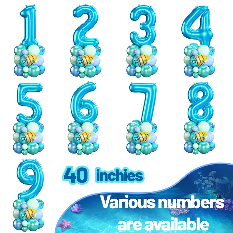 - 🎈Flexible DIY - In addition to a number foil balloon, this ocean birthday balloons decoration set also has latex balloons & octopus, bubble fish, shark foil balloons. You can form them into a beautiful number balloon tower according to the manual, or paste them to the wall or fill them with helium to float in the air to enhance the party atmosphere. (Tips: 5 inch balloon can't float.) The package includes long balloons and dot glue that you can quickly assemble into a balloon tower as you like.