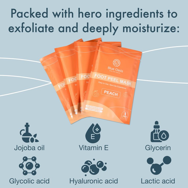 Blue Oasis Foot Peeling Mask - Exfoliating Foot Mask for Dry Cracked Feet, Peach Cracked Heel Treatment, Moisturizing Foot Peel Mask, Luxury Foot Care for Baby Soft Feet, Foot Exfoliator 4-pack