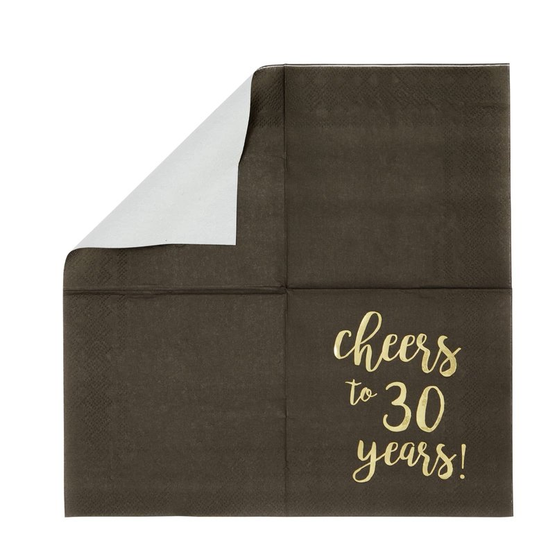 - Cheers to 30 Years Napkins: Complete your birthday or anniversary-themed party decorations with our set of disposable cocktail napkins