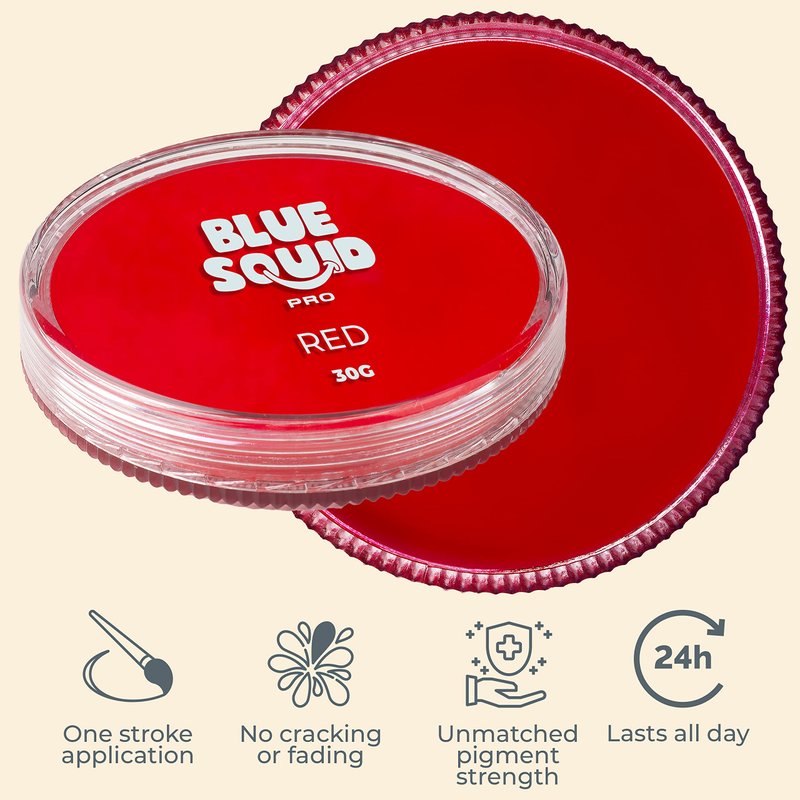 Blue Squid PRO Face Paint - Professional Water Based Single Cake Facepaint & Body Paints - SFX Makeup, Kids Adults Face Painting for Costume, Halloween, Cosplay - Classic Red 30g / 1oz