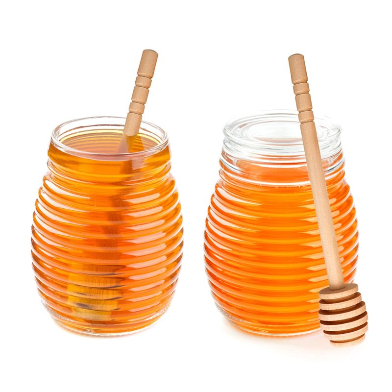 2)The grooves on these wooden dippers help you easily collect and dispense honey from the jar.