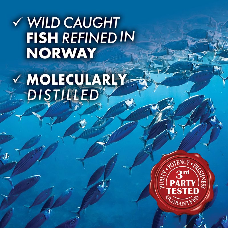 - TESTED FOR PURITY & POTENCY - The fish oil used is sustainably harvested from wild-caught ocean fish that are refined in Norway. Molecularly distilled and 3rd party tested by an independent, cGMP-registered laboratory using AOAC/AOCS methods for purity and potency.