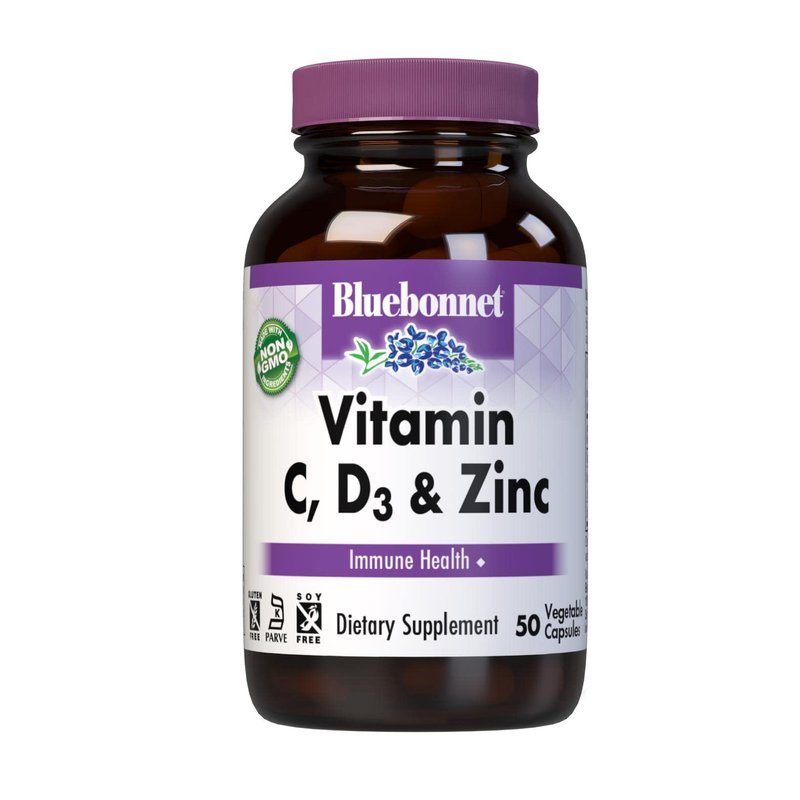 Bluebonnet Nutrition Vitamin C, D3 & Zinc, for Immune Health and Respiratory Function*, Soy-Free, Gluten-Free, Non-GMO, Kosher Certified, Dairy-Free, 50 Vegetable Capsules, 50 Servings