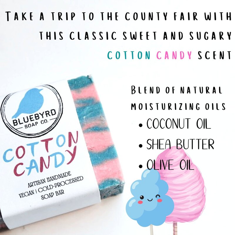 Bluebyrd Soap Co. Cotton Candy Soap Bar For Kids | Sweet Scented Fun Soap Bar For Kids & Children | Rainbow Soap For Kids | Shea Butter Moisture Soap Bar For Kids & Teens (Cotton)