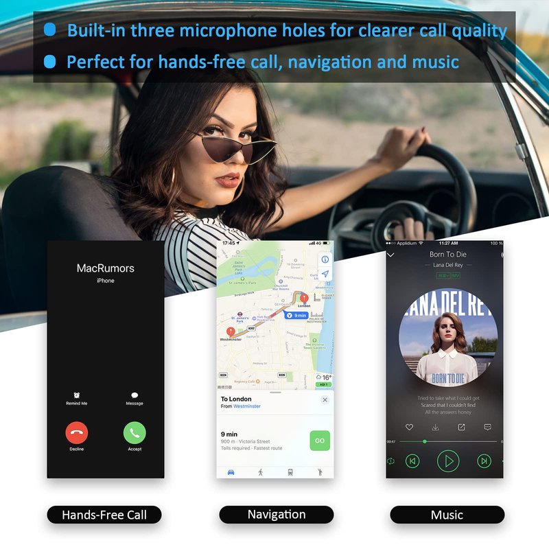 - 【Muiti-functional BUTTON】One “MFB” button to play/pause music, answer/redial/hang up/reject calls, which helps you make hands-free calls. It also supports broadcasting voice notification from existed navigation App. You don’t have to look down the phone on the move. Make sure safely driving.