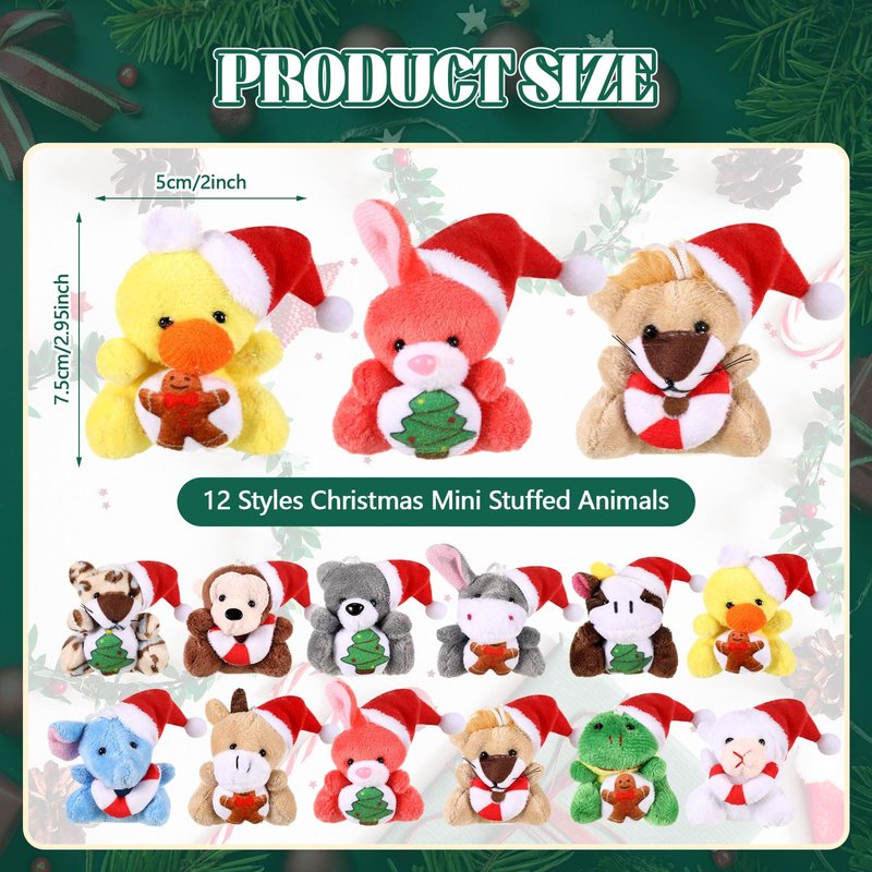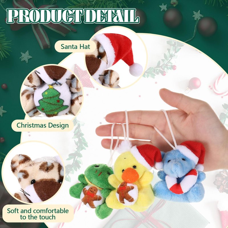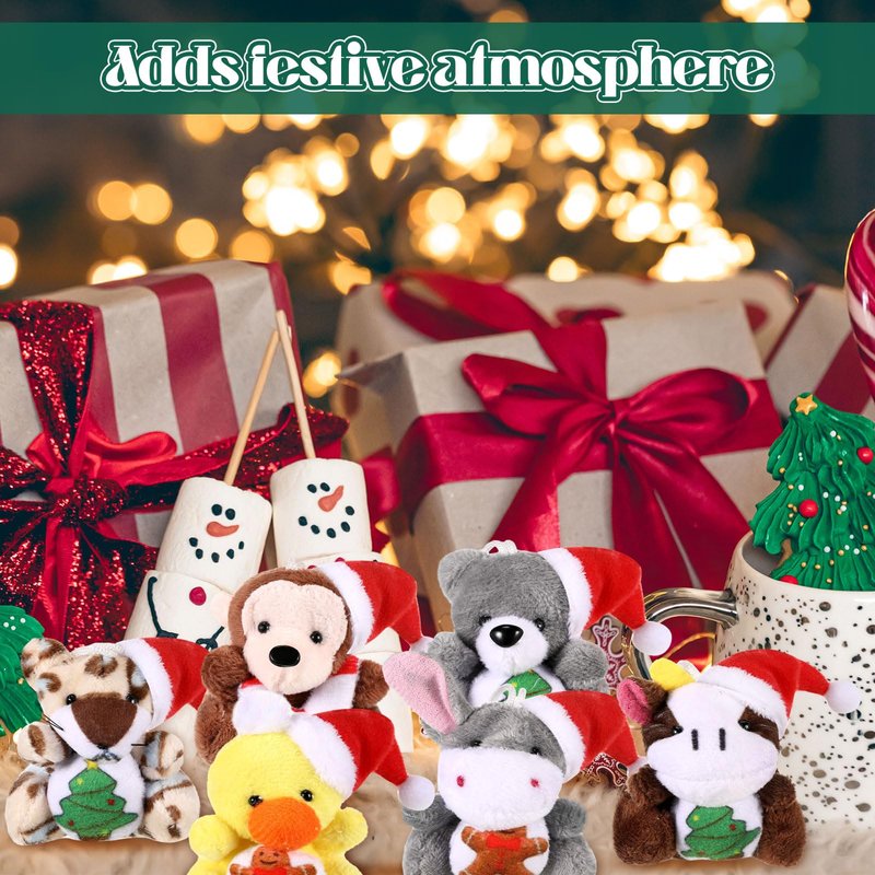 - Christmas Elements: each Christmas mini plush stuffed animals comes with a cute Santa hat, with gingerbread men, Christmas tree, etc., making them even more whimsical and charming; These Xmas stuffed animal bulk are ideal for adding fun to your holiday