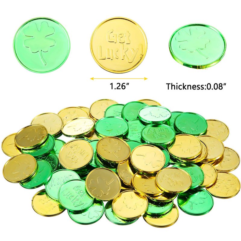 - Package content: you will get a pack of 120 plastic St. Patrick's Day plastic coins in clover patterns, colored in green and gold, which are enough for you to use during the St. Patrick's Day festival and make your St. Patrick's Day festival different