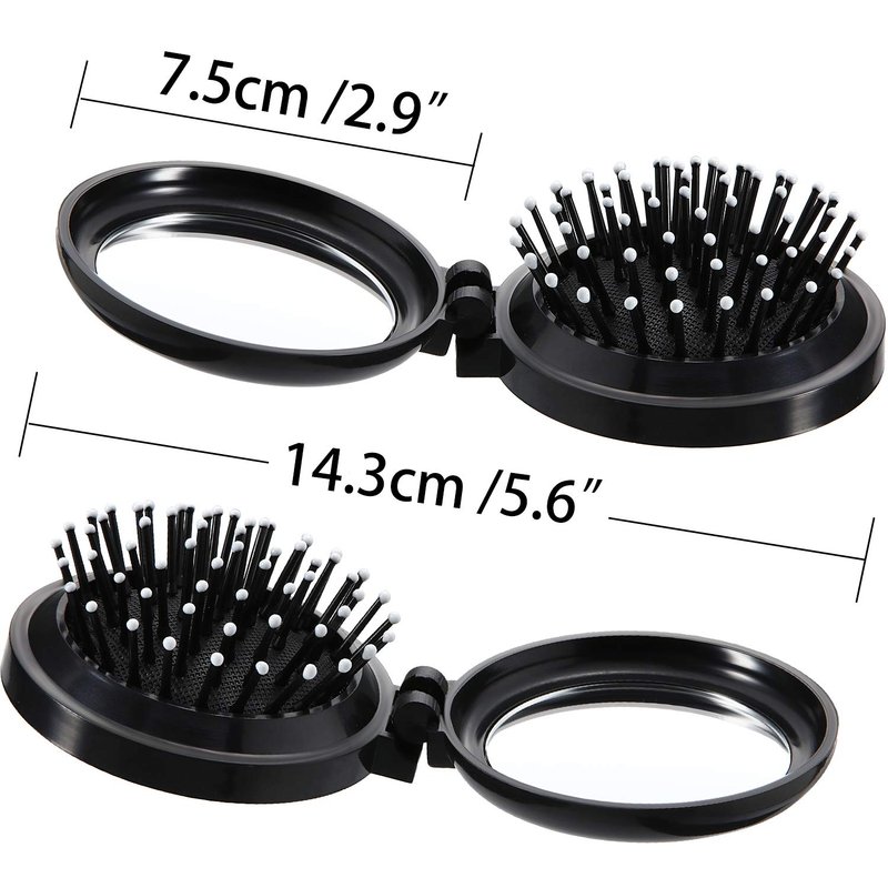 2 pack folding travel mirror hair brushes round folding pocket hair brush mini hair comb compact travel size hair massage combor women and men