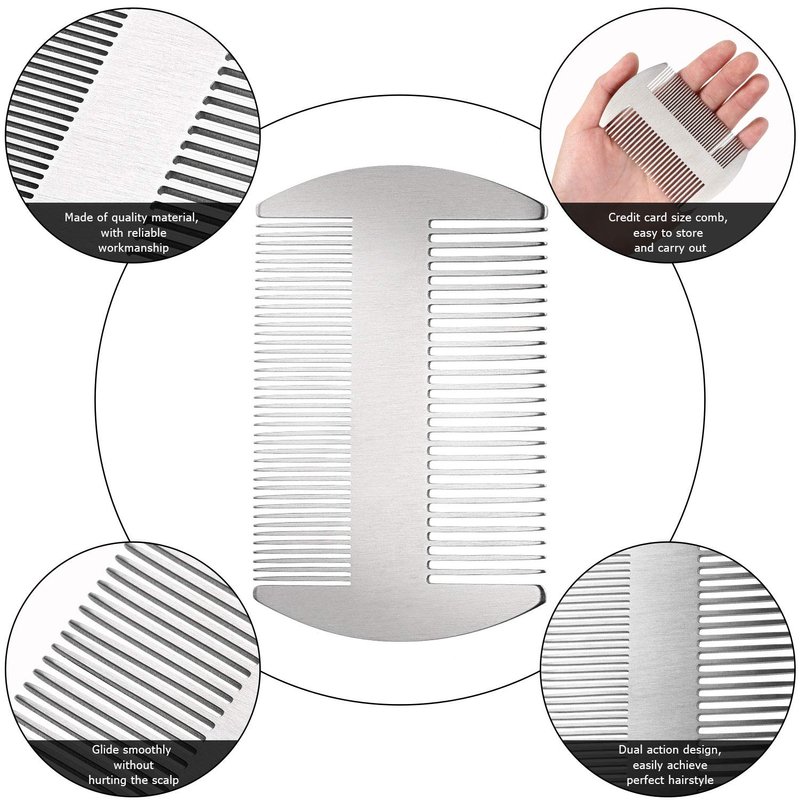 - Double-sided design: the metal wallet comb has one dense teeth side and one sparse teeth side, easy to cater your needs, making your hair not easy to be knotted and improving smoothness