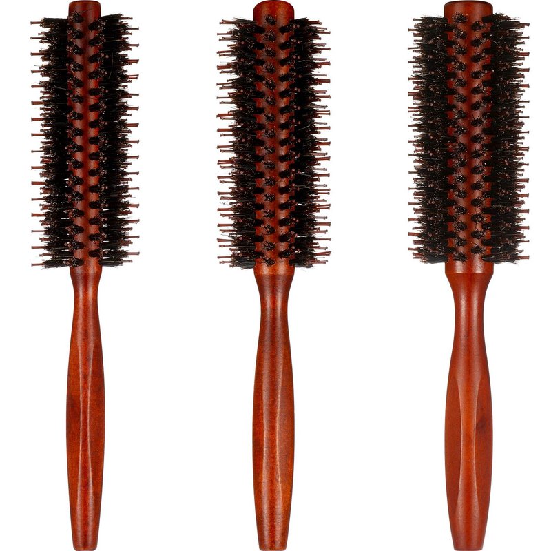 3 Pieces boar bristle round brush round hair brush with wood handle quiff roller brush for women and girls (10/ 12/ 14 rows) Fit most hair texture: With soft bristles and 3 different sizes, these quiff rollers work well for most hair types, such as dry, fine, oily, straight or curly hair. Multiple functions: The bristle round brush is effective in combing, detangling, styling, curling and adding volume. You can choose different size according to your need. Specification: Material: Brush: nylon and boar bristles Handle: wood Color: brown Size: 10 Row: 22x4.3cm/ 8.66 x 1.69 inch (L x W) 14 Row: 22x4.6cm/ 8.66 x 1.81 inch (L x W) 18 Row: 22x5.0cm/ 8.66 x 1.97 inch (L x W) Warm notice: If the comb gets dirty, please wash it clean directly with shampoo and dry it as soon as possible. Please allow slight error on size due to manual measurement.
