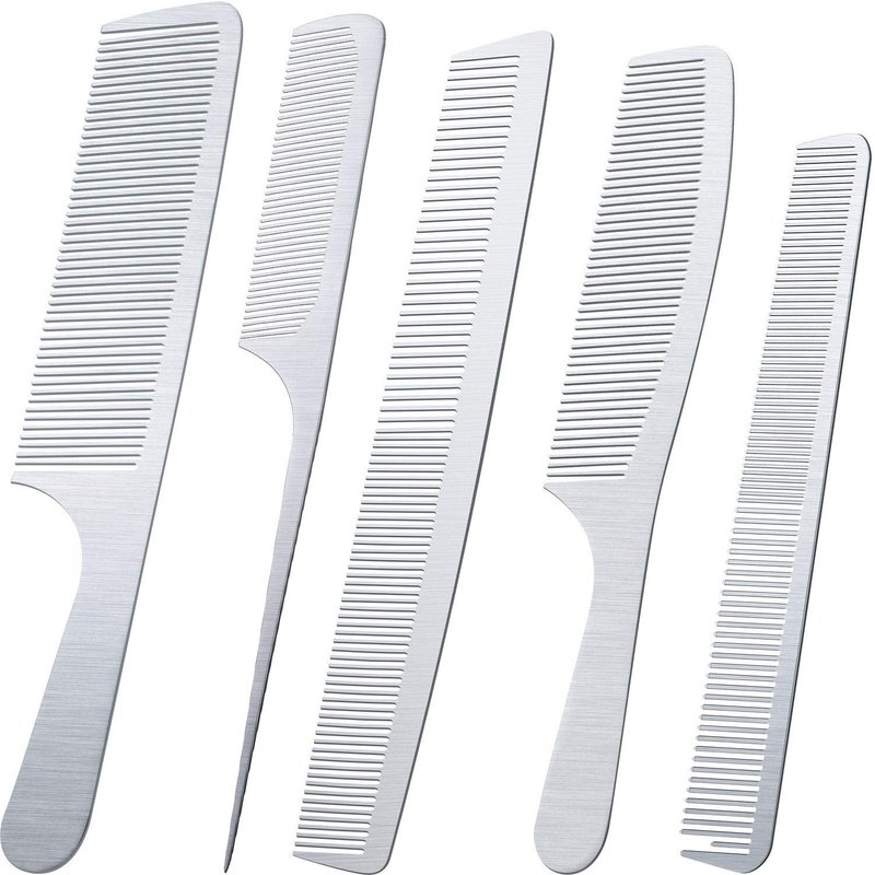 - 5 Designs for different purposes: metal tail comb with dense teeth is ideal for distributing hair into nap or sideburn areas and teasing when styling hair; The fine and wide tooth comb is hand polished that will stimulate your scalp or skin; Metal comb with handle is easier for you to use that can comb your hair easily, making your hair smooth and not easy to be knotted