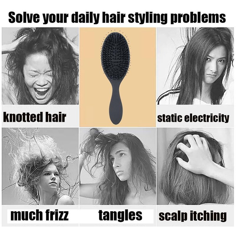 - Reduce hair breakage: This detangling boar hair brush can help reduce hair breakage by absorbing shock when detangling hair, while flexible nylon combing pins does not pull or tear your hair, which allow you to enjoy more comfortable hair brushing and scalp massaging