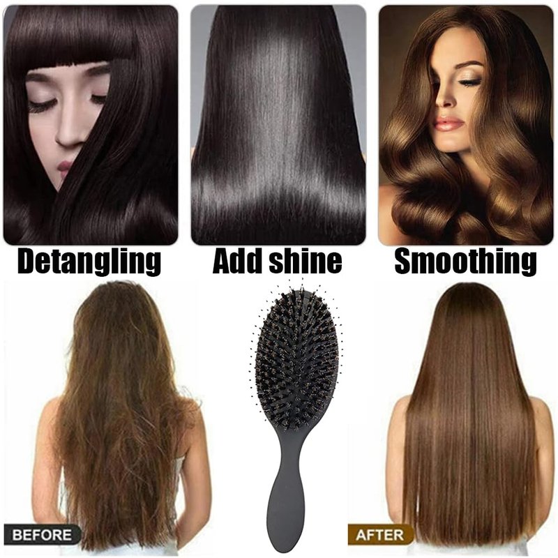 - Detangle hair with less pain: The boar bristle detangler brush can easily glide through your hair without pulling or tearing hair, remove hair tangles and knots, remove the loose hair floating around, reduce frizz, leaving your hair tangle free and knotless.