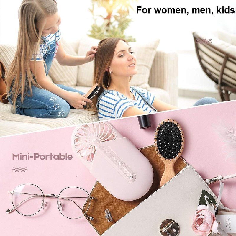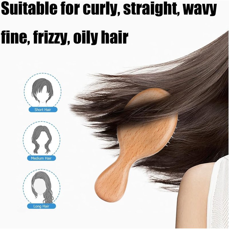 Boar Bristle Detangling Hair Brush Wooden Paddle Brush for Women Men Kids, Anti-frizz Mini Detangler Brush Styling Hairbrush Comb for Curly Fine Hair
