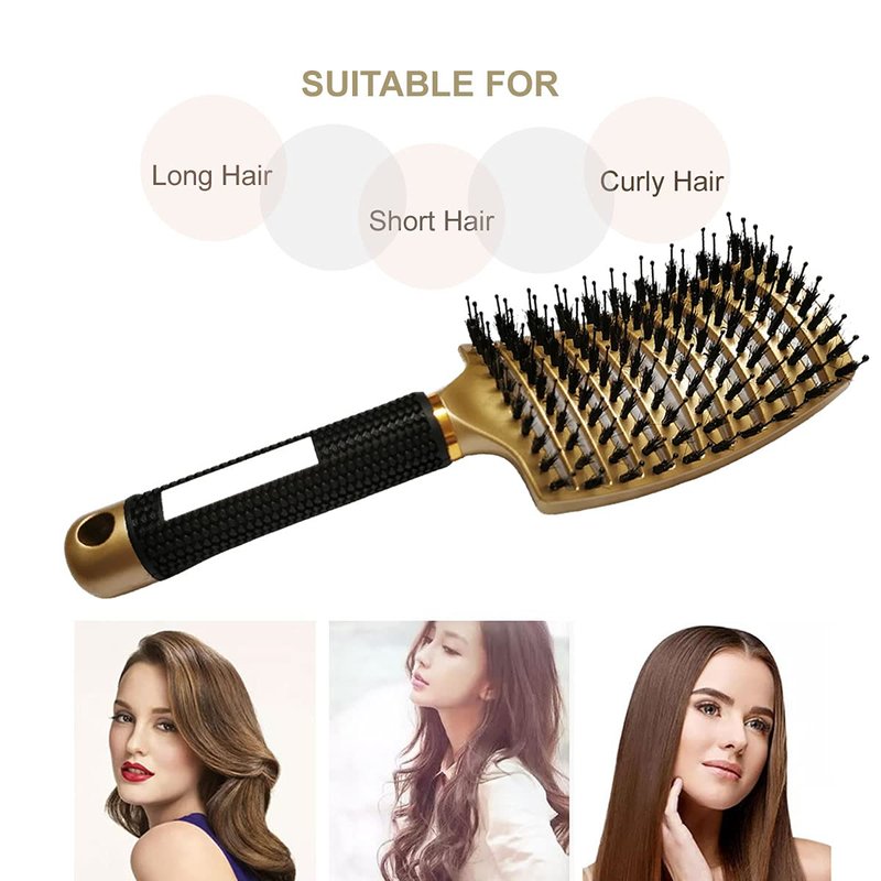 - FOR ALL HAIR TYPES. Whether your hair is long or short, curly or straight, thick or fine, This curved hair brush will run through any hair type while removing tangles, and it works great on wet or dry hair for men women and kids. This natural boar bristles hair brush will make combing become a enjoyment