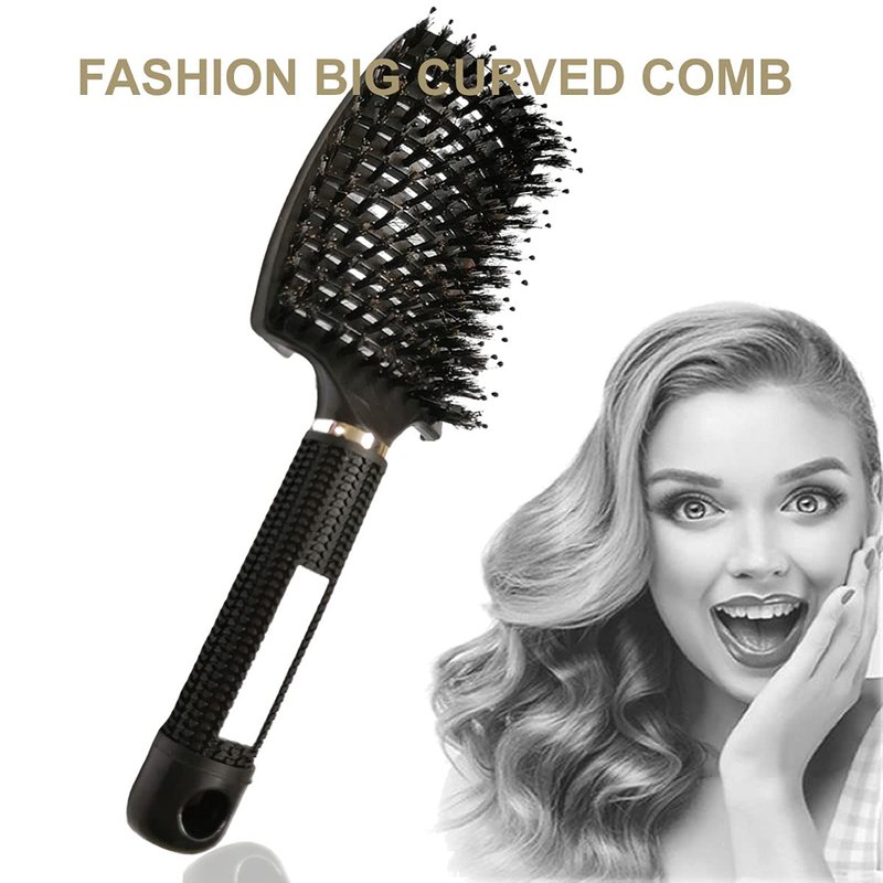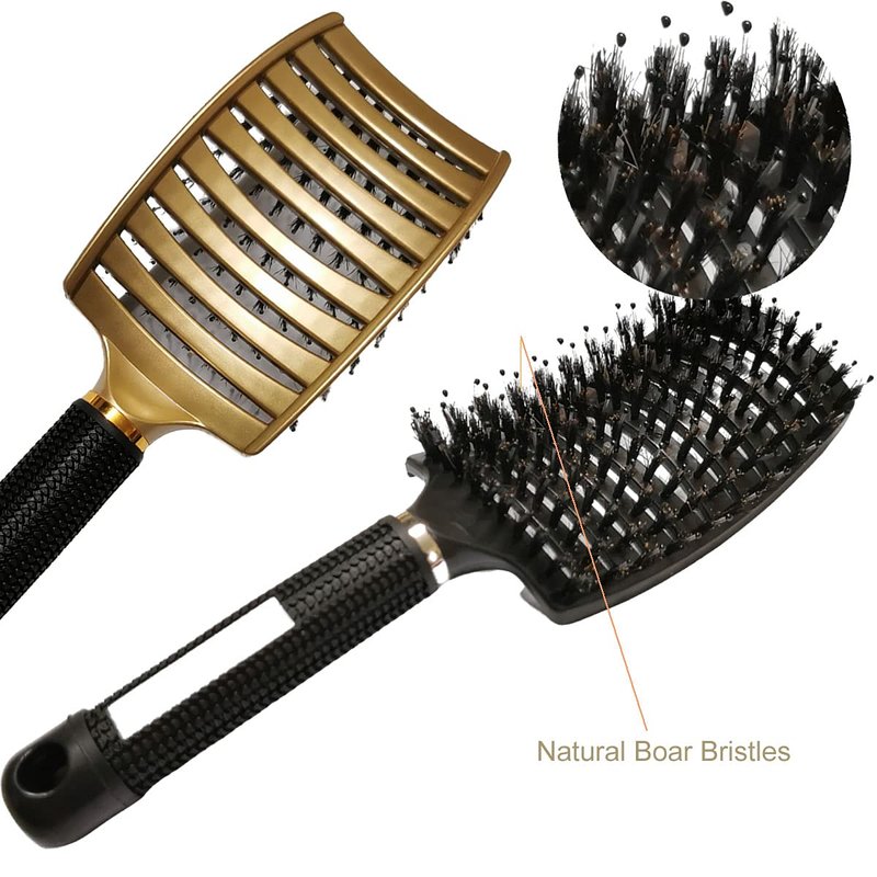 - DETANGLING HAIR BRUSH MASSAGE YOUR SCALP. The curved hair brush with moderate spacing and uniform distribution are covered with boar bristles. Added nylon bristles help detangle thick hair and massage the scalp. With a mixture of natural boar bristles & nylon pins, this brush is perfect for detangling the hair