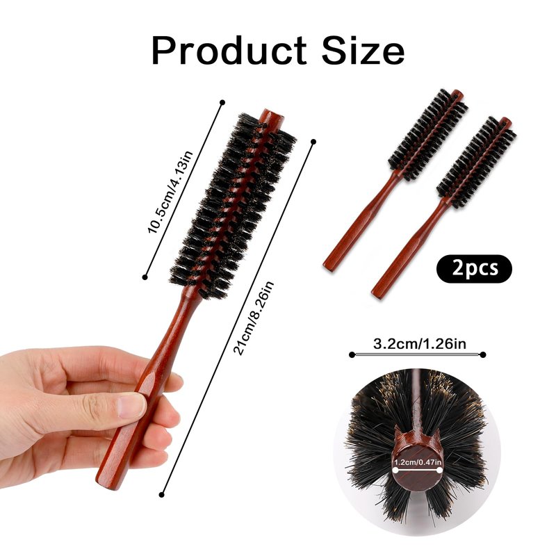 - GENTLE AND EFFECTIVE - Crafted with high-quality natural boar bristles, the small round brush set is gentle on the scalp. It effortlessly distributes natural oils, reduces frizz, and maintains healthy, shiny hair.