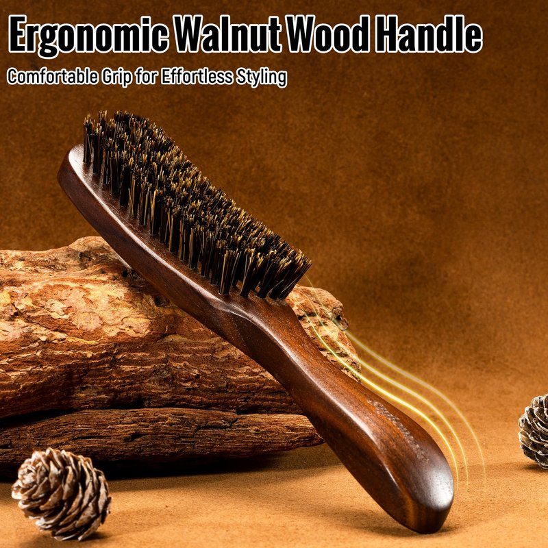- Comfort Grip Walnut Wood Handle - Our boar hair brush features a natural walnut wood handle that is odor-free and ergonomically designed for a comfortable hold. Say goodbye to hand strain and discomfort