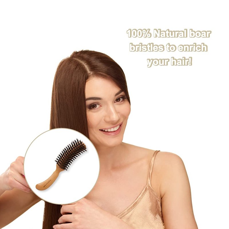 - [ Smooth and Rich ] 100% natual boar bristle is great for reducing frizz, enriching damaged hair and adding shine and volume. Mixture of long and short bristles enables long bristles to reach deeply to scalp while short bristles work to pat hair's surface.