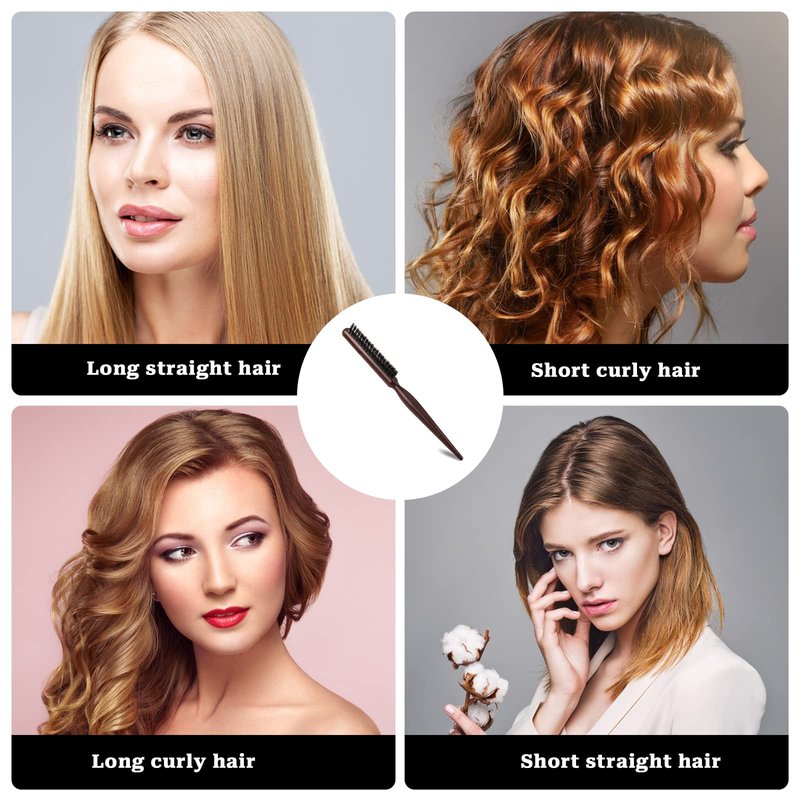 Boar Bristle Styling Brush with Rat Tail for Curly Hair Sectioning, Backcombing, and Smoothing