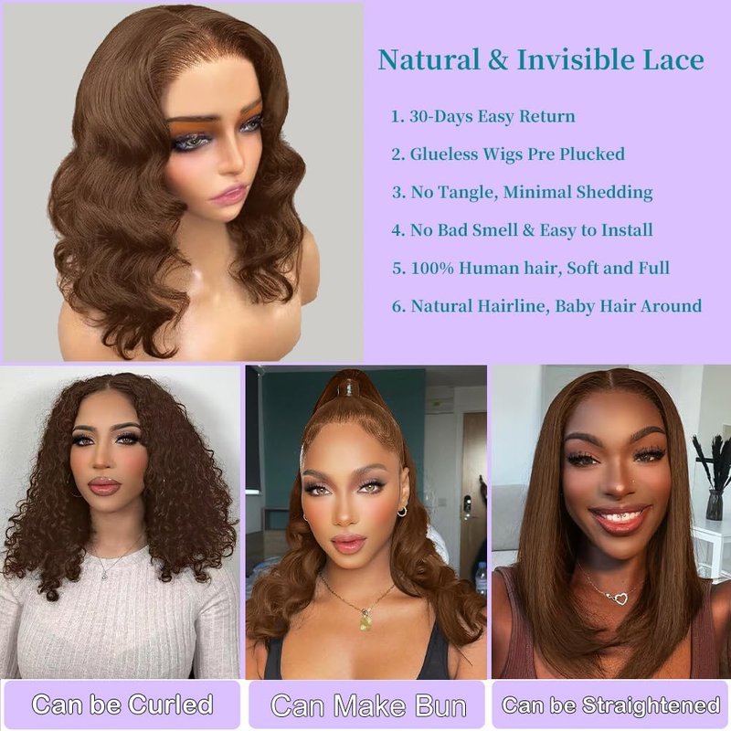 - Body Wave Lace Front Wigs Human Hair Suitable For Any Occasion: Color #4 Chocolate Brown Human Hair Wigs for Black Women, Suitable For Party, Birthday, Travel, Celebration, Wedding, Graduation, Make You The Most Charming. Can also be Used As Gifts For Family And Friends. 4# Colored Human Hair Lace Front Wigs is Super Popular In Autumn And Winter, Bring You More Charming and Beautiful.