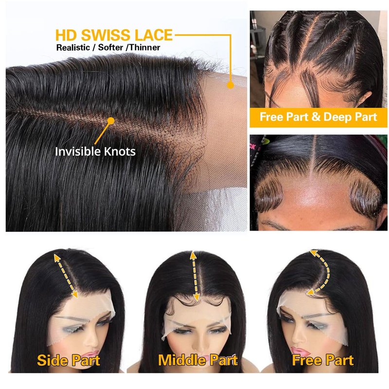 - Bob Wigs Human Hair Feature: 13x4 Swiss HD Transparent Lace Have Large Space, Match All Type Skin Colors, Can be Parted Middle Part and Side Part. Pre Plucked Natural Hairline with Baby Hair, More natural like your own hair