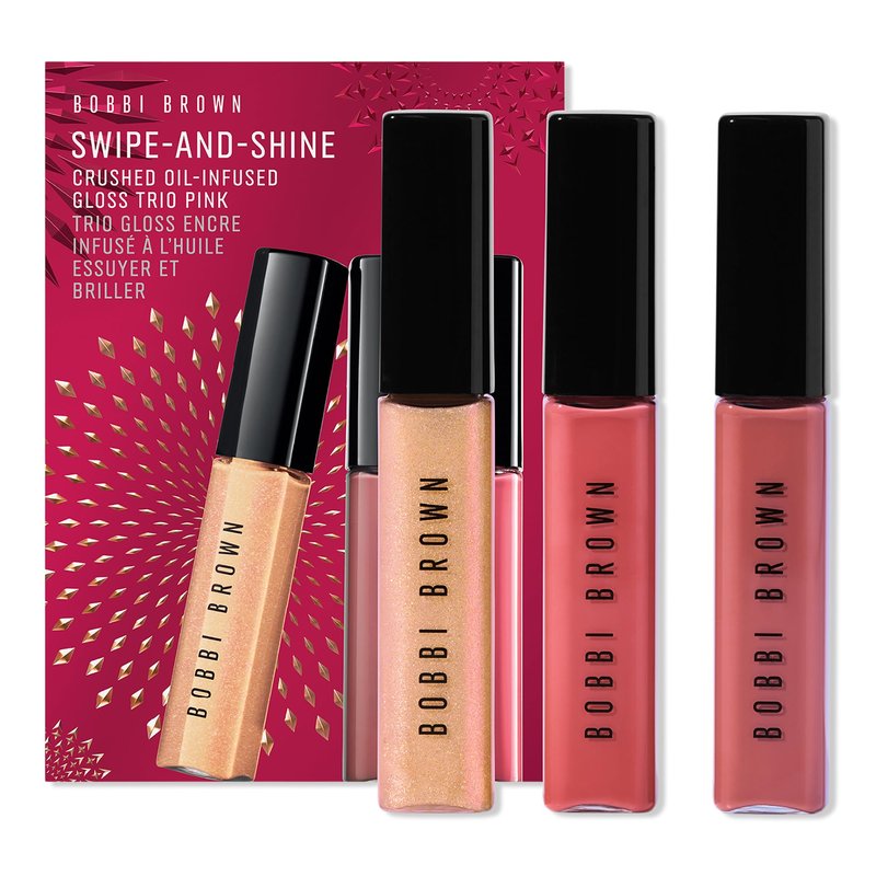 - WHAT IT IS: Bobbi Brown’s Crushed Oil-Infused Gloss Trio brings you 3 mini super-smooth, ultra-hydrating, and not-sticky lip glosses that add color, moisturize, and leave lips with plumped-up shine.