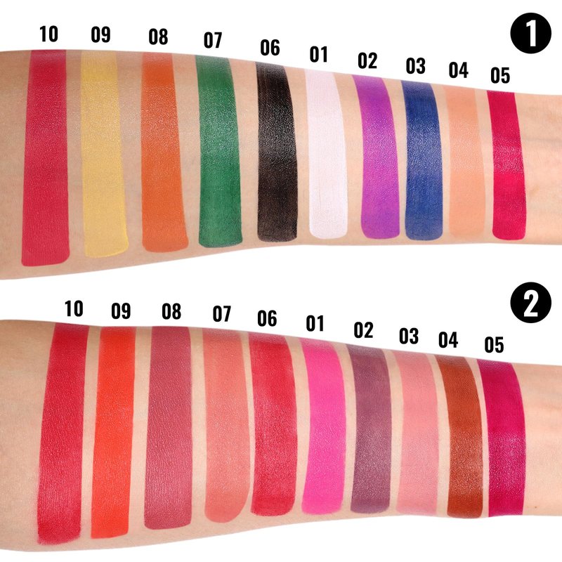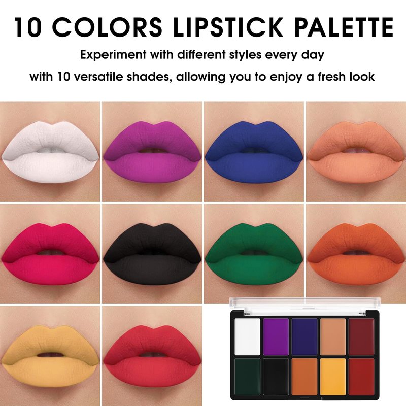 - Blend & Match Bold Looks: Featuring 10 intense shades like black, white, purple, green, and more, it's perfect for creating customized, dramatic lip looks. Mix the colors to craft unique lip art for Halloween, cosplay, or any bold occasion where ordinary just won't do.