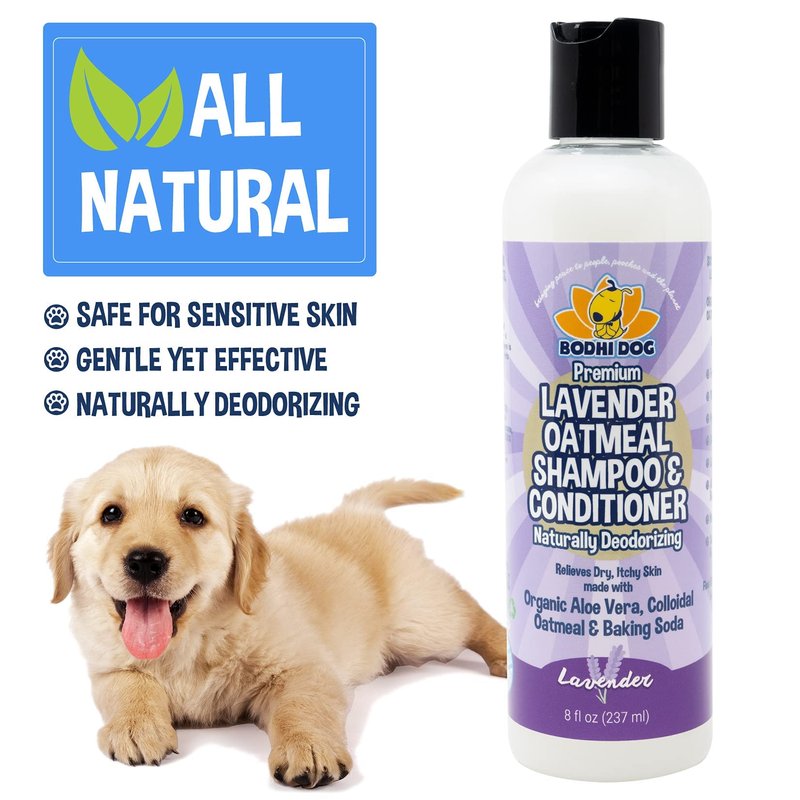 Bodhi Dog Organic Lavender Oatmeal Dog Shampoo and Conditioner | Hypoallergenic Conditioning Deodorizing Formula for Dogs Cats & Pets | Treatment Wash Soothes Dry Itchy Skin Allergy Relief (8 Fl Oz)