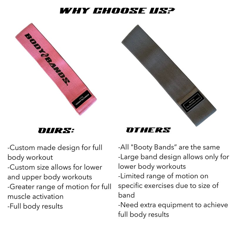 - Great Upper Body Workout: Traditional “Hip/Booty” bands are only good for your lower body due to their size…they are too big to use on the upper body. Body Bands are specifically designed to be the perfect size to work both lower and upper body, due to their size. So, you don’t need to carry extra equipment or neglect your upper body.