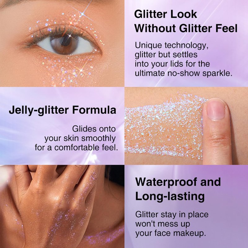 - 【Premium Quality Formula】Glitter gel is made of cosmetic grade glitter, which is safe for all skin types. Mixed with high-quality gel and glitter, you can apply it on the skin effortlessly, not easy to peel off, no need to use glue, save your makeup time. Creates a super shimmery effect when the light hits it.
