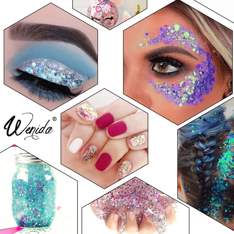 Body Glitter Wenida 9 Colors 190g Holographic Iridescent Cosmetic Festival Makeup Chunky Powder for Nail Hair Eye Face