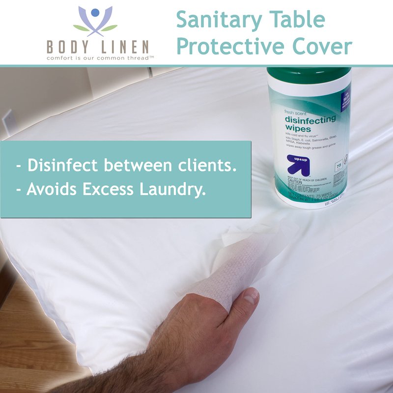 Save time and money with the Body Linen Sanitary Protective Cover. Made from durable polyurethane laminate (PUL) material, this lightweight cover doesn’t feel like noisy stiff plastic and provides a waterproof and easy-wipe clean surface. Plus, the fabric is hypo-allergenic, quiet, breathable and doesn’t allow heat buildup for ultimate comfort for your clients. Use over your table warmer and fleece pad and it won't trap the heat from your warmer allowing it to pass through and make our clients comfortable. This barrier keeps massage lubricants and client sweat and dander from degrading your pad and warmer reducing laundry requirements and extending the life of these valuable assets. Ideal for any spa or professional therapists, this cover is 32 inches wide, 72 inches long and 7 inches deep to fit snuggly over fleece pad and table warmers. Conveniently, this massage cover does not require any special laundry processes. It can be washed and dried up to 160 degrees as needed and wiped clean with soap and water or disinfectant between uses.