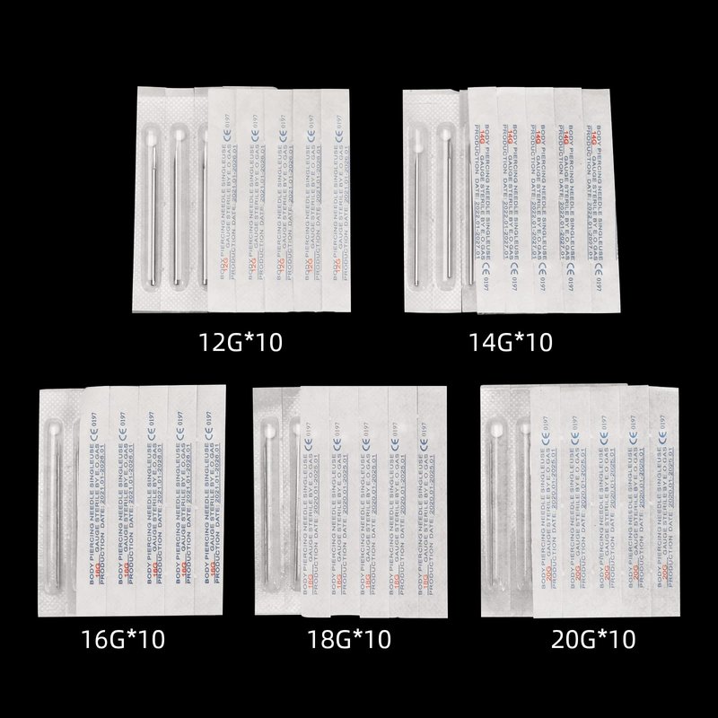 Body Piercing Needles, ATOMUS 50PCS Mixed Ear Nose Piercing Needles 12g 14g 16g 18g 20g Stainless Steel Navel Nipple Lip Body Piercing Needles