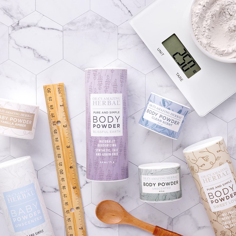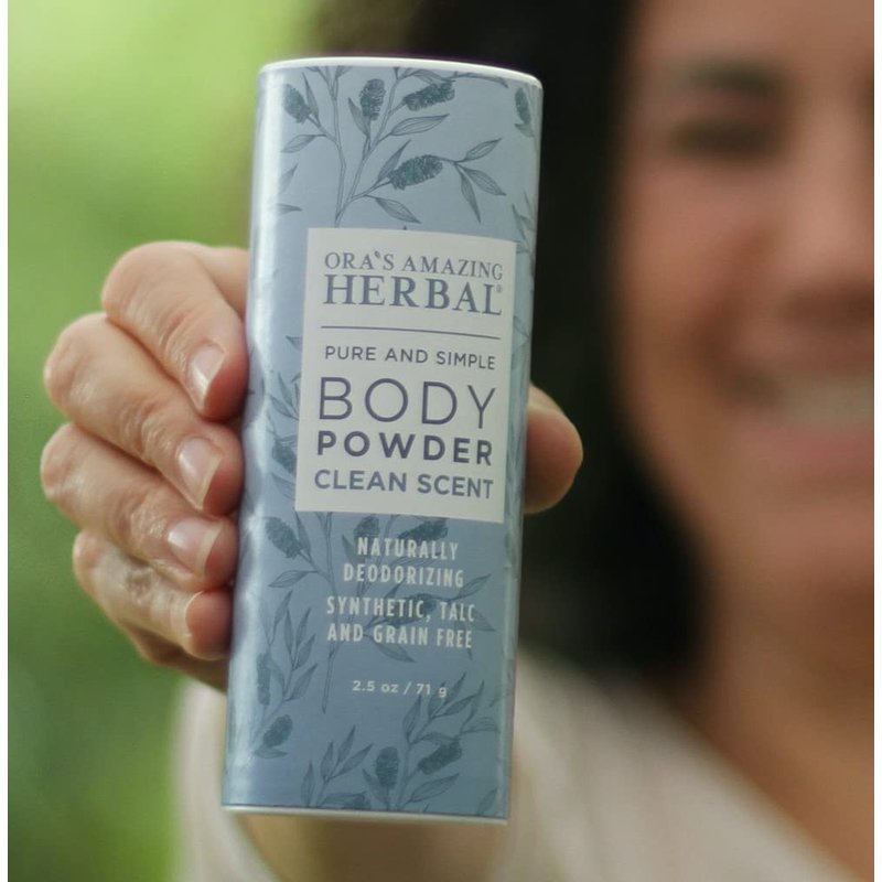 - Read our ingredients! Talc free, corn free, grain free, gluten free, paraben free, synthetic fragrance free, cruelty free. Our clay is also tested regularly to ensure it is lead free. Made in the USA by Ora's Amazing Herbal