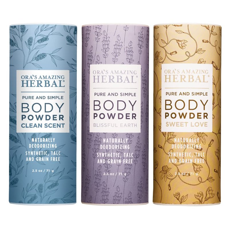 Body Powder for Women and Men, Natural Gift for Women, Talc Free Scented Dusting Powders, Ora's Amazing Herbal, Variety Set 3 Pak, 2.5 oz Each