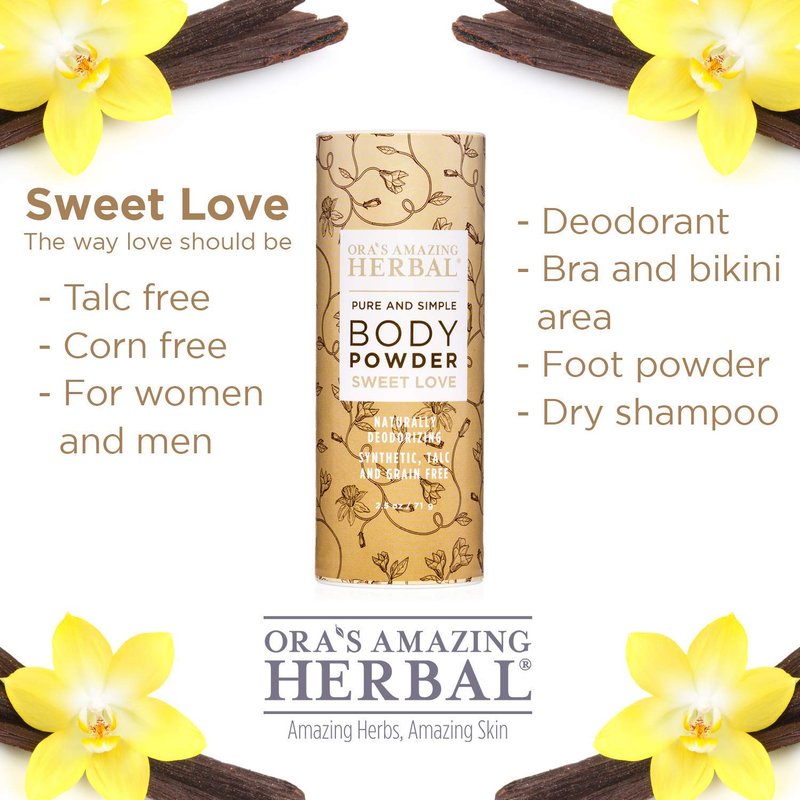 Body Powder For Women, Talc Free Powder, Bath Powder, No Corn, Grain or Gluten, Sweet Love Scent, Frankincense, Amber, Ylang Ylang, Vanilla, Ora's Amazing Herbal, 2.5 oz