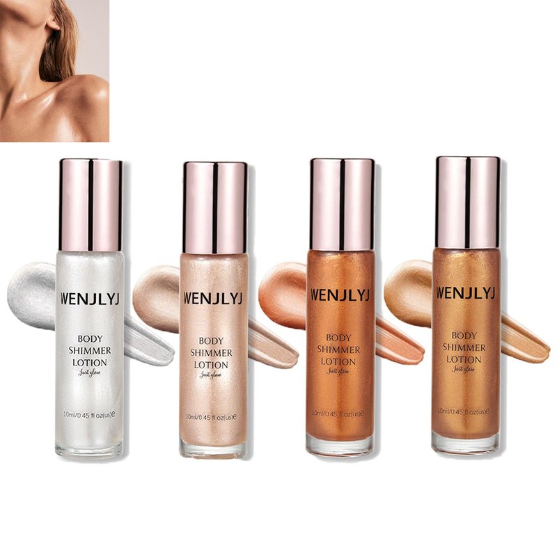 Body Shimmer Oil Set,Waterproof Body Glitter Oil for Face & Body,High Glossy Long Lasting Moisturizing Body Luminizer Glow,Multi-purpose Body Glitter Oil Liquid Illuminator Highlighter(4 Pcs)