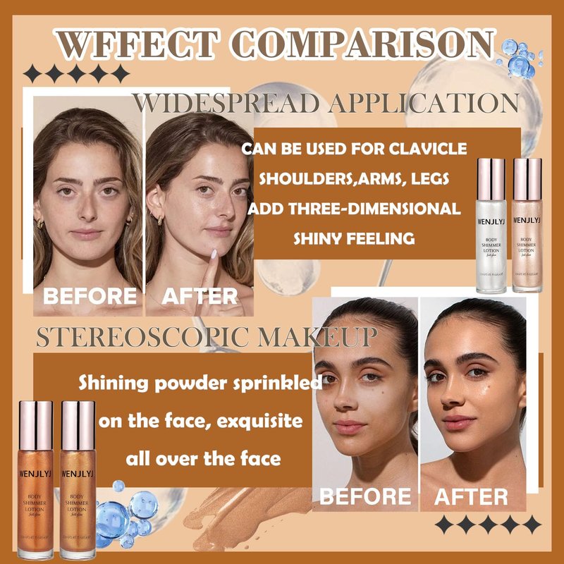 - 😎【Long-lasting Makeup】Waterproof body glitter oil is long-lasting and waterproof and evens out skin tone, the shimmering highlighter body oil doesn't easily come off, leaving your skin looking sparkling and unique all day long.