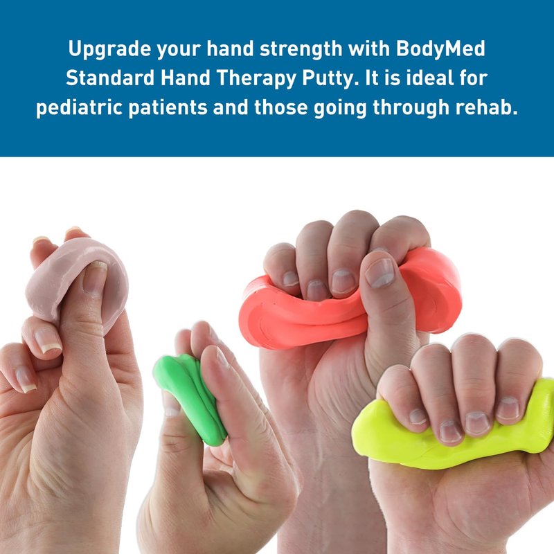 The Body Sport Standard Hand Therapy Putty is made to exercise the hands and fingers. The putty is extremely malleable for hours of stretching, twisting, and shaping. This top-quality putty provides a comfortable solution to strengthening and stretching the muscles and joints in your hands and fingers and improves motor development skills. Body Sport Hand Therapy Putty comes in many sizes for your specific needs and comes in Soft, Superior-Soft, Medium-Soft, Medium and Firm textures. This product is intended for ages fifteen years and older and is to be used for rehabilitation exercises of the hands and fingers.